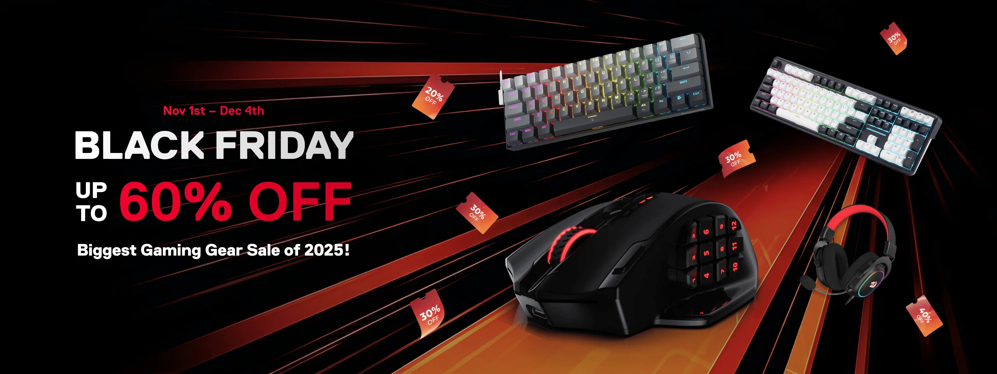 Place an order between Nov 1 and Dec 4 and submit your order number, email, and wishlist product through the entry form. 10 winners will be drawn to receive their wishlist product (up to $200 USD), and the results will be announced on the Redragon website on December 5.