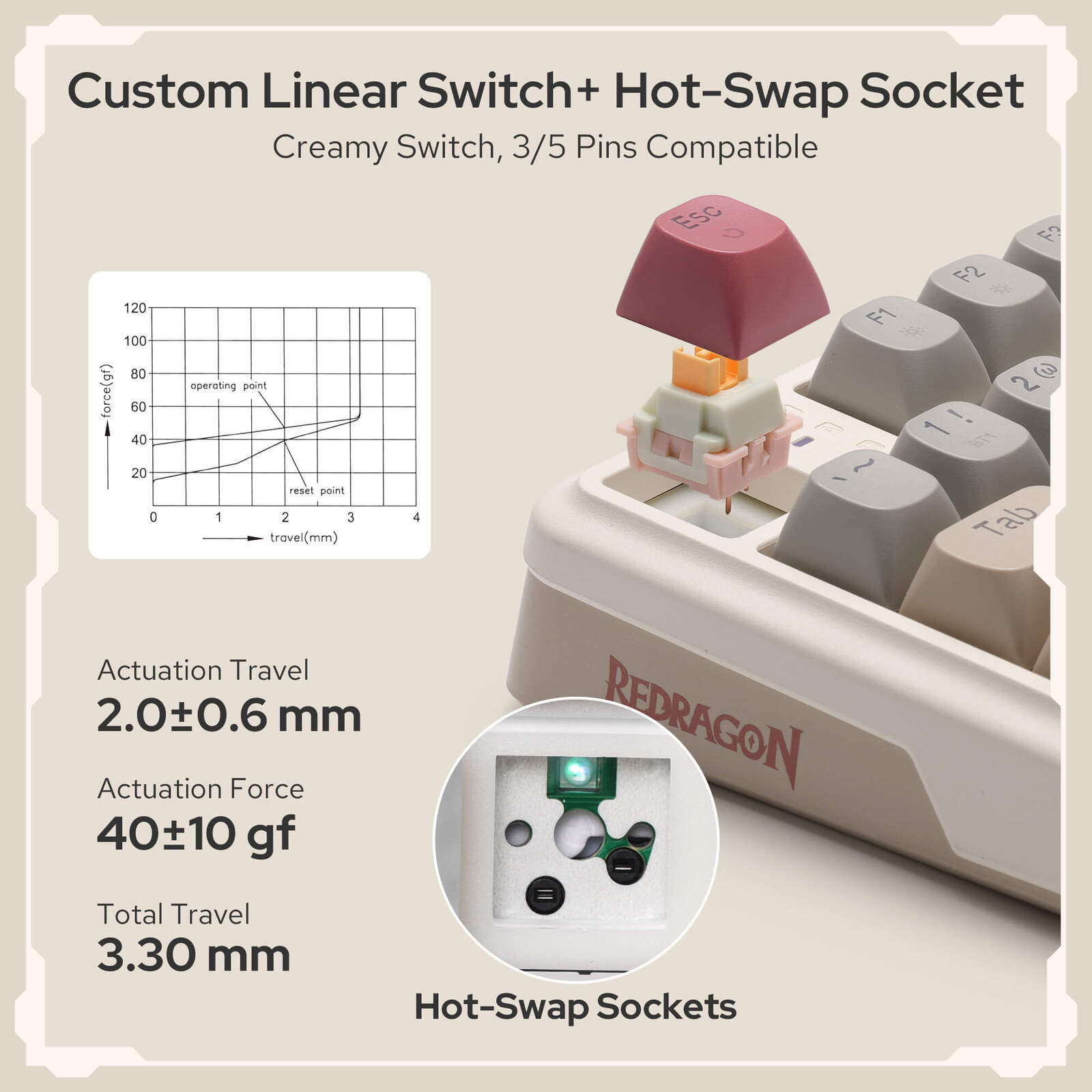 With thick-lubed custom linear switches combo with a gasket form factor, K686 MAX features cushioned rich linear travel with silky creamy and cozy typing feedback. The brand new upgraded socket is nearly all switches(3/5 pins) compatible