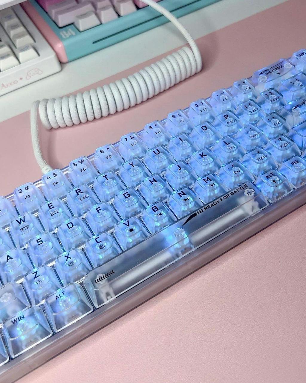 Prepare to be mesmerized by the Redragon K628 PRO SE's stunning design. The keyboard boasts a trendsetting full-transparent fancy design, with keycaps, switches, and even the entire board made from transparent materials.