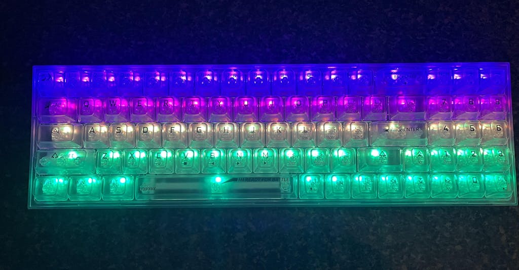 This keyboard is really great, has a practical size and the RGB looks amazing. All keys feels great when you are playing and the transparent design bring an excellent apparence.